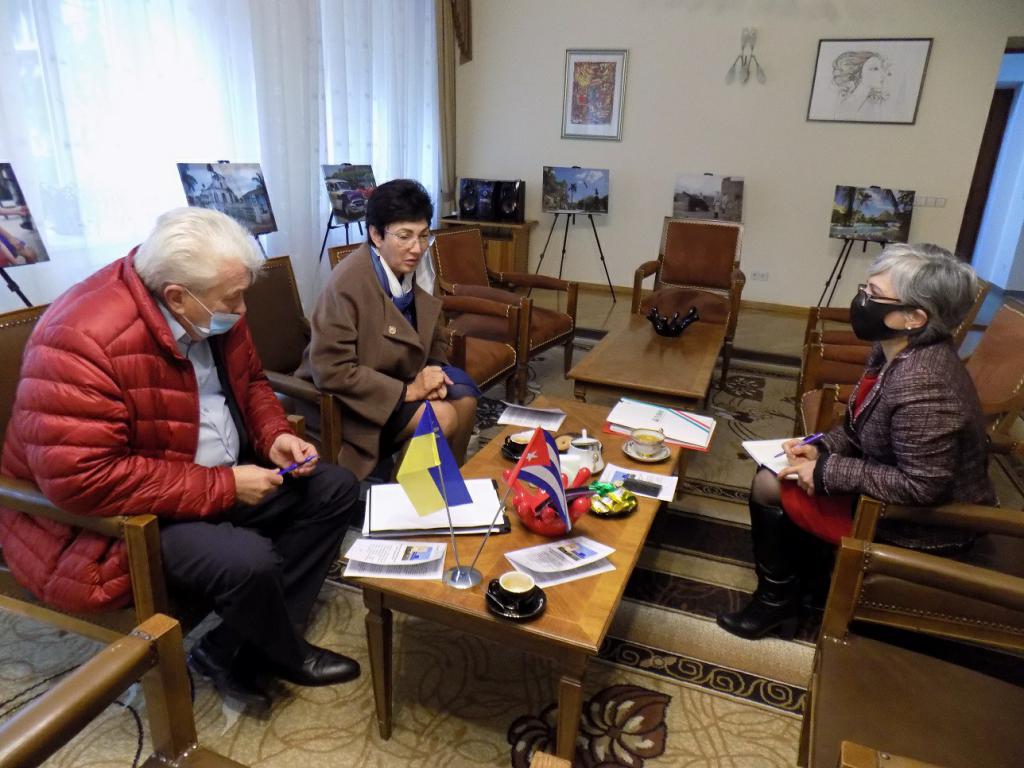 Kiev 30 de octubre 2020- Elena Vladimirovna Efimenko, jefe del departamento regional de salud de Kiev sostuvo una reunión de trabajo con la Embajadora de la República de Cuba en Ucrania, Natacha Díaz Aguilera en la sede de la Embajada de Cuba en ese país.
