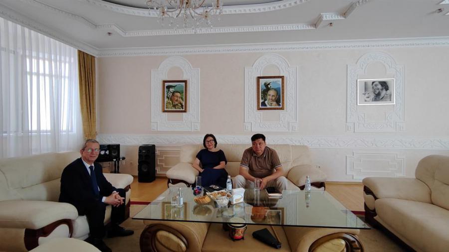Astaná, 12 de junio de 2023. El embajador de Cuba, Oscar Santana León, sostuvo un encuentro en la sede de la misión diplomática cubana en esta capital con Damilya Kumanova, Directora General del Departamento de Turismo de la Cámara Nacional de Empresarios de la República de Kazajstán “Atameken”, quien estuvo acompañada por Sovet Aliyev, subdirector de ese departamento.