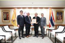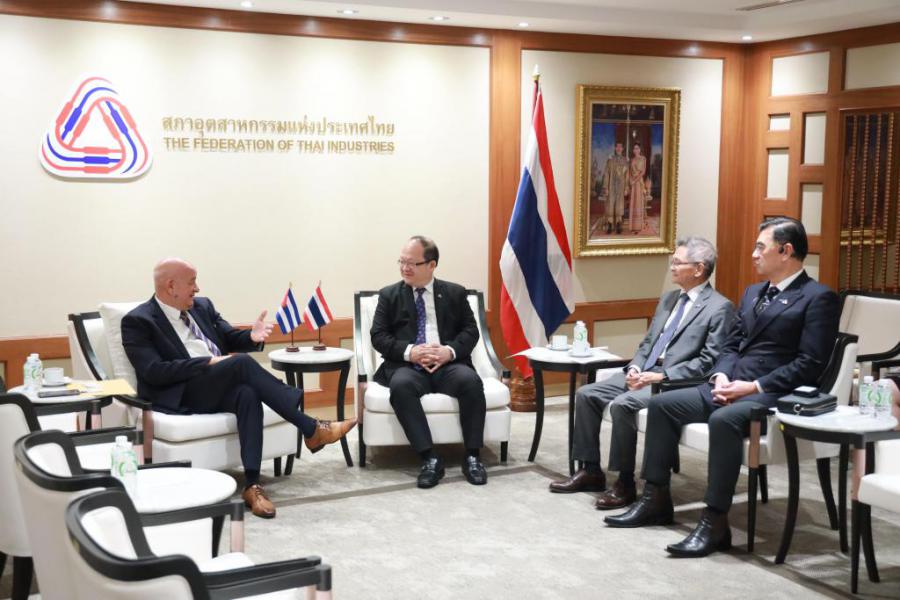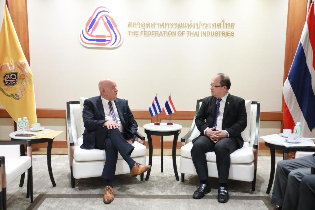 El Sr. Kriengkrai Thiannukul, Presidente de la Federación de Industrias Tailandesas (FTI), junto con el Sr. Montree Mahaprukphong y el Sr. Arin Jira, Vicepresidentes de la FTI, dieron la bienvenida en su sede en Bangkok al Embajador cubano Sr. Pedro Pablo San Jorge Rodríguez.
