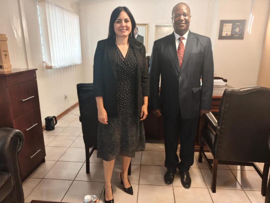 Harare, 17 de abril de 2026 – El Director General de la Autoridad Nacional de Biotecnología de Zimbabwe, Dr. Deckster Tonny Savadye, intercambió con la Embajadora de Cuba, Excma. Sra, Susellys Pérez Mesa, sobre las potencialidades de la cooperación bilateral.