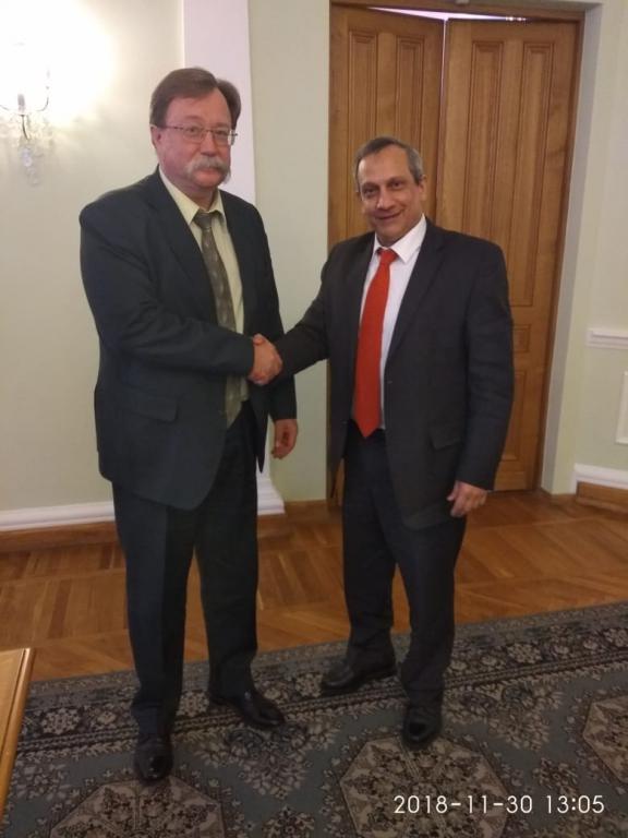 Rusia, 30 de noviembre. El Director General de Asuntos Multilaterales y Derecho Internacional del MINREX, Rodolfo Reyes Rodríguez fue recibido por Ilya Igorevich Rogachev, Director del Departamento de Nuevos Desafíos y Amenazas de la cancillería rusa, en la sede de esta institución