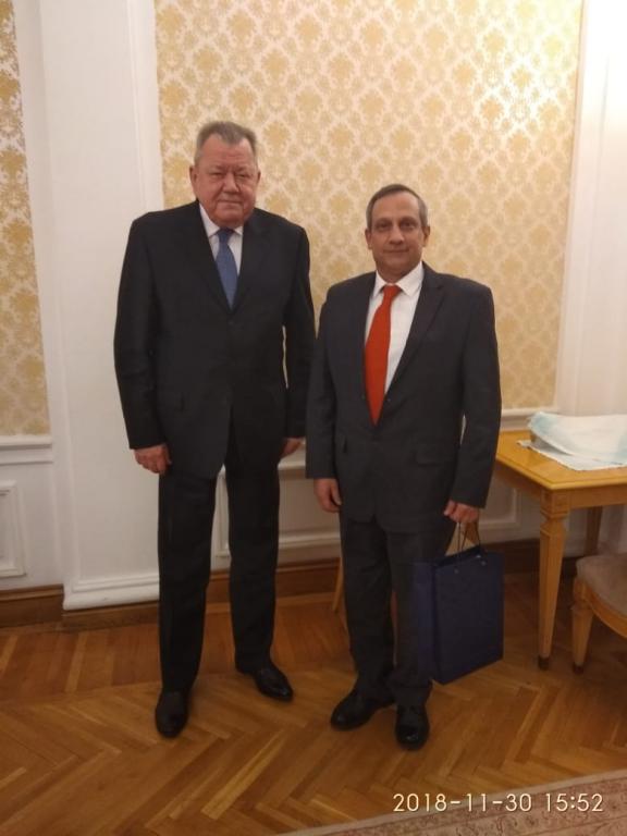 Rusia, 30 de noviembre. El Director General de Asuntos Multilaterales y Derecho Internacional del MINREX, Rodolfo Reyes Rodríguez fue recibido por Oleg Syromolotov, Viceministro de Asuntos Exteriores de la Federación de Rusia, en la sede de este ministerio.