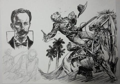El estruendoso martilleo de los fusiles era ensordecedor: en 90 minutos los españoles dispararon 10 075 cartuchos de fusiles; de estos, más de 7 000 en la vanguardia. Atrapadas entre la tupida arboleda, compactas nubes de humo blanco —provocadas por las descargas de Remington que empleaban pólvora negra— dificultaban la visibilidad. El desdén por la muerte y su determinación de combatir hacían de Martí un ser temerario. Y en la primera oportunidad, con un golpe de bridas salió al encuentro de su destino. Por fin peleaba…