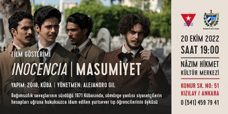 Para celebrar el día de la cultura cubana, el próximo 20 de octubre, se realizará la primera proyección en Turquía de la película cubana Inocencia del cineasta cubano Alejandro Gil. El filme ha sido subtitulado por la Asociación de Amistad con Cuba José Martí.