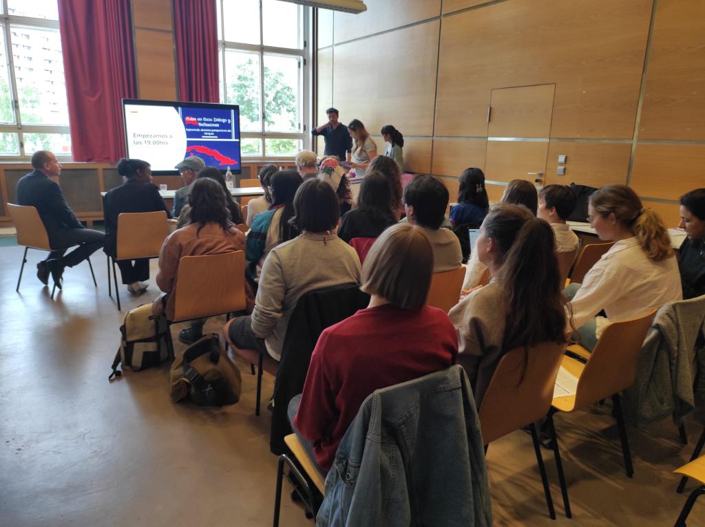 Berlín, 4 de junio de 2024.- Por invitación del Instituto Latinoamericano de la Universidad Libre de Berlín se desarrolló en la noche de ayer un panel sobre el Bloqueo estadounidense contra Cuba. El panel estuvo conformado por el consejero de la Embajada de Cuba en Alemania, Yunior Garrido Proenza; el Prof. Dr. Bert Hoffman, politólogo, profesor de esta universidad y miembro del equipo de dirección del Instituto Giga para estudios latinoamericanos y la Dra. Raquel Paul Caballero, profesora de ciencias políticas y cubana residente en Alemania.