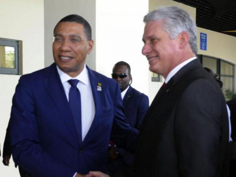 El Presidente cubano compartió al mediodía en un almuerzo ofrecido por el primer ministro de Jamaica, Andrew Holness, con los jefes de Estado y de Gobierno de los países miembros de la Caricom, espacio que posibilitó compartir el agradecimiento mutuo y remarcar el compromiso entre las naciones caribeñas que continúa y se afianza en el tiempo.