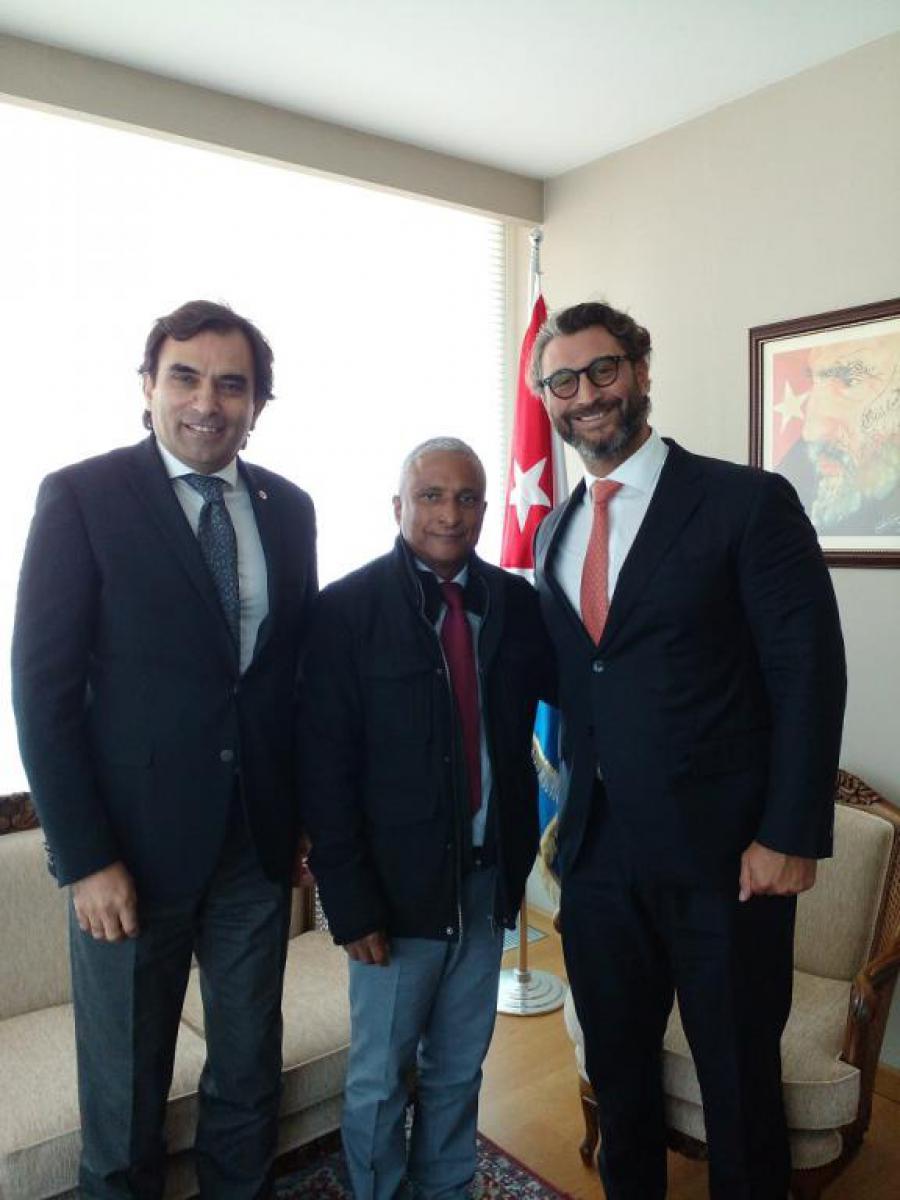 El Embajador de Cuba en Turquía Dr. Alejandro Díaz Palacios sostuvo un encuentro con Sami Kiresepi, Vicepresidente de la Empresa Santa Farma, la misma realiza operaciones basadas en la misión de ofrecer soluciones favorables para la salud humana y la calidad de vida.