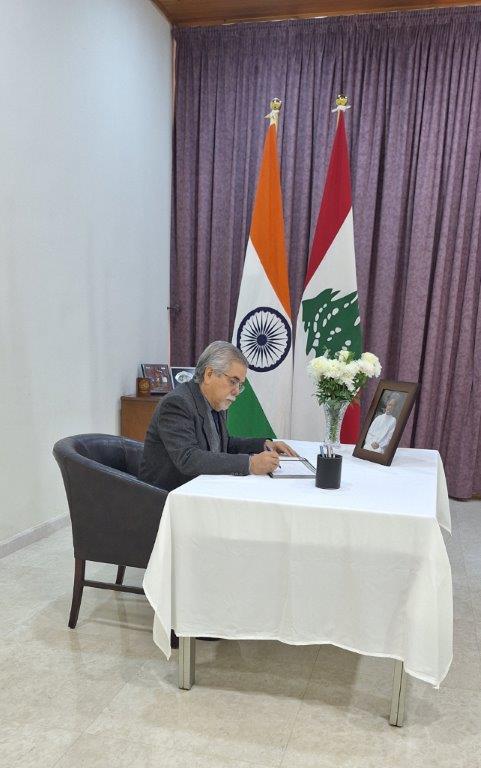 El Embajador de Cuba firma el libro de condolencias en la Embajada de la India en Libano