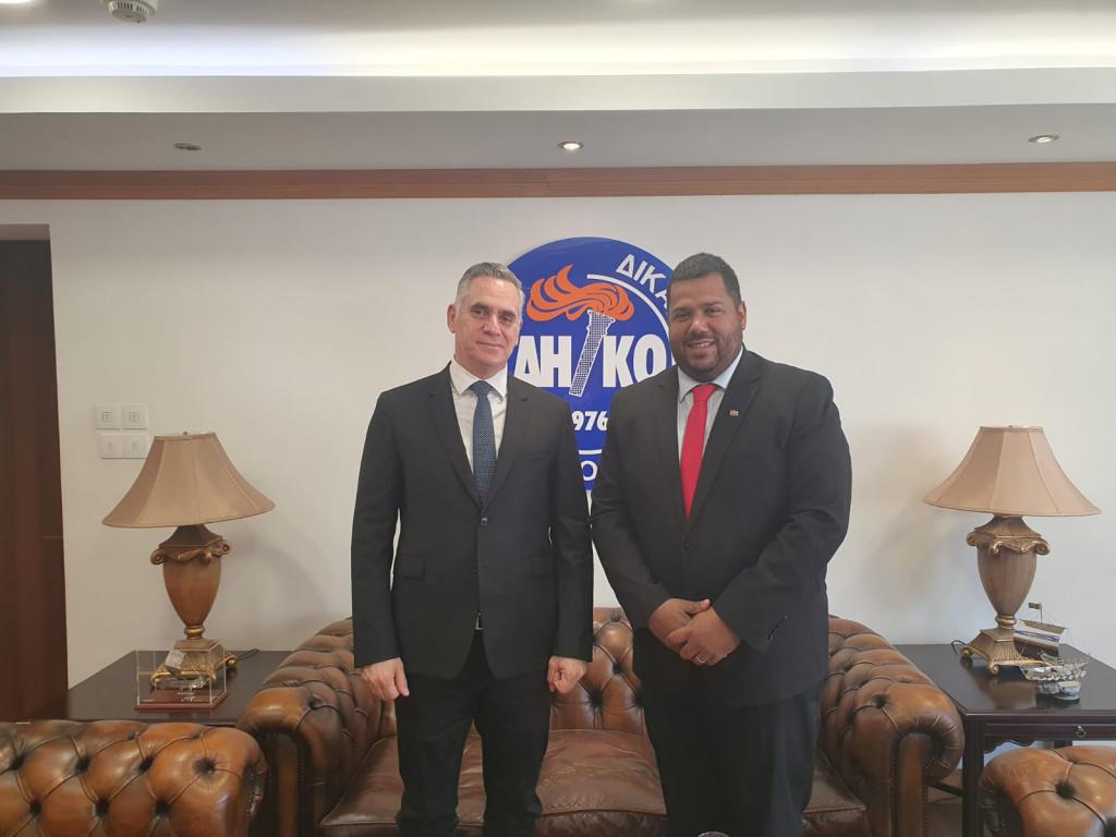 El Embajador de Cuba en la República de Chipre, S.E. Sr. Angel Gustavo Suárez Cordero, sostuvo una fructífera reunión con el Presidente del Partido Democrático (DIKO), Sr. Nikolas Papadopoulos en la sede del Partido.