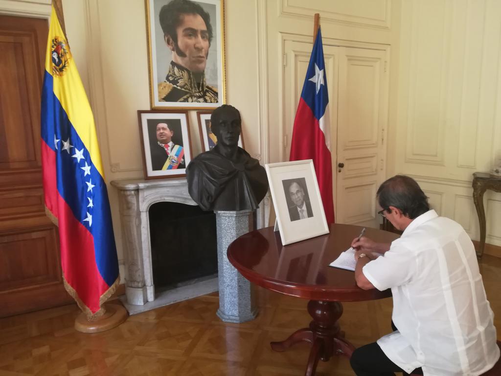 El Embajador Jorge Lamadrid Mascaró firmó el Libro de Condolencias por el fallecimiento del gran amigo de Cuba Alí Rodríguez Araque en la Embajada de Venezuela en este país. Alí Rodríguez Araque fue Embajador de Venezuela en Cuba lo cual lo unió entrañablemente a la lucha del pueblo cubano. Hermanó a ambos pueblos por su dedicación para desarrollar planes de mutuo beneficio para ambos países. Identificó las causas e ideales de ambas naciones y apoyó solidariamente a Cuba en todo momento. Por eso el pueblo cubano lamenta su deceso y le brinda el respeto de un verdadero amigo.