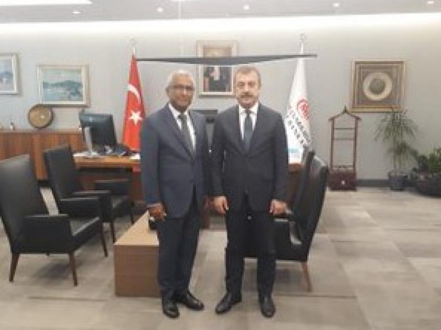 El gobernador del Banco Central de la República de Turquía, el profesor Şahap Kavcıoğlu, recibió al Embajador de Cuba en su despacho. Durante la reunión se revisó la situación y el potencial de desarrollo de las relaciones bilaterales en los ámbitos económico, comercial y financiero.