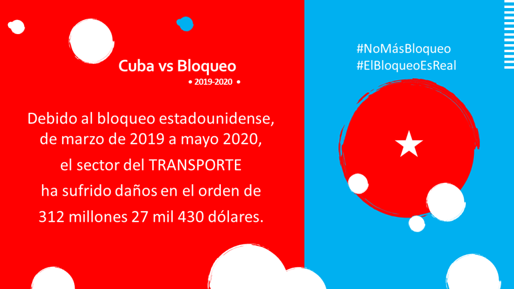 Nueva York, 15 de abril de 2021. De marzo de 2019 a mayo 2020, el sector del transporte ha sufrido daños en el orden de 312 millones 27 mil 430 dólares. Las regulaciones del bloqueo, en particular las medidas adoptadas en 2019 por el gobierno estadounidense para impedir los suministros de combustible a Cuba, tuvieron un impacto devastador en esta esfera.