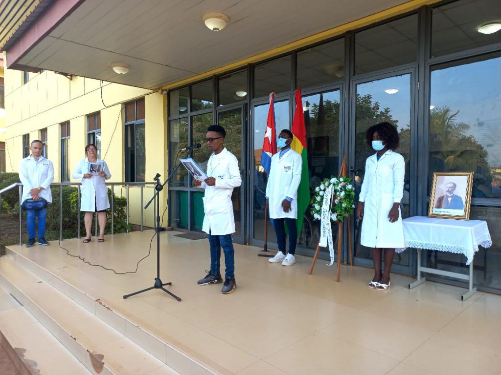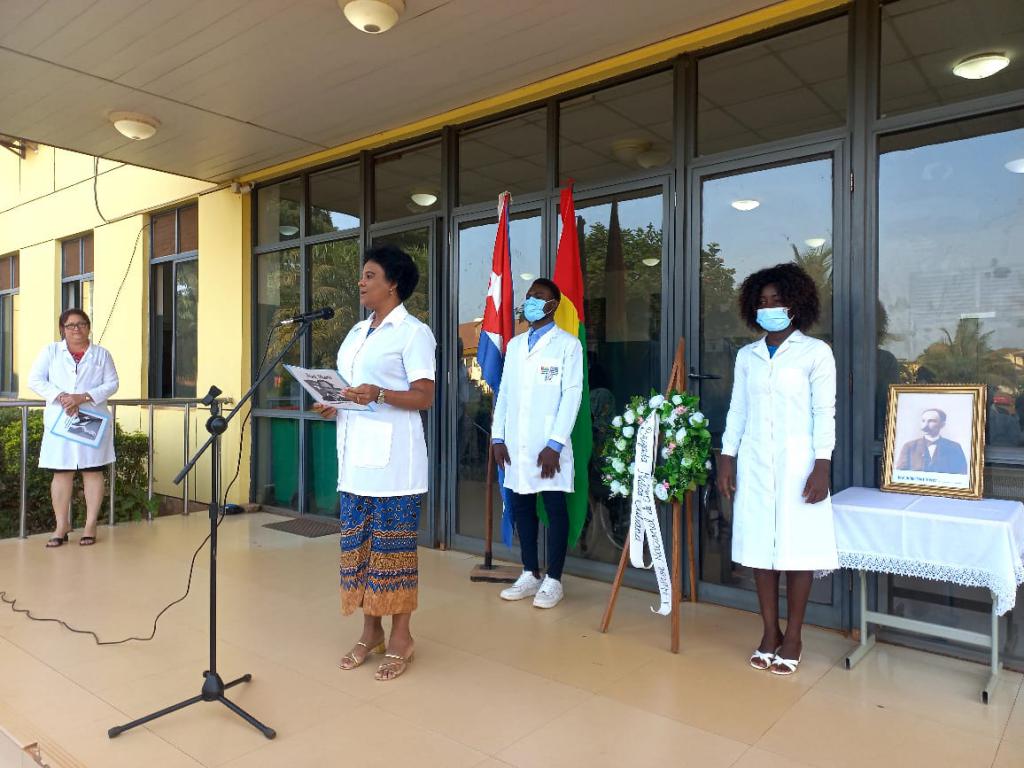 El acto central político cultural por la efeméride, celebrado en el Hospital Militar principal de Bissau, estuvo presidido por el Dr.C Raúl de la Peña Silva, Embajador de Cuba en Guinea Bissau, la Dra. Milagros Valdespino Argudín, Jefa de la Brigada Médica Cubana, el Teniente Cor. Romario Cumba, Director del Hospital, los decanos cubano y guineense y el secretario del partido de la BMC; participó además una representación de estudiantes y profesores de la facultad de medicina.