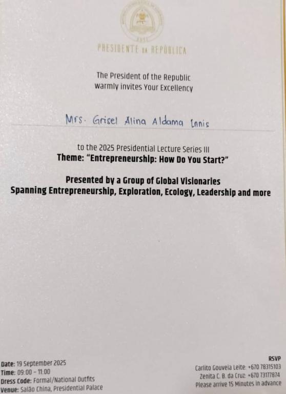 El propósito del presidente Dr. Ramos Horta, con esto Coloquios, es contribuir a tener una visión nacional de emprendimiento e innovación en el país, por lo que también estuvieron presentes miembros del gobierno, parlamento, partidos políticos, docentes, estudiantes, y Cuerpo Diplomático. Por la parte cubana, asistió la embajadora Alina Aldama.