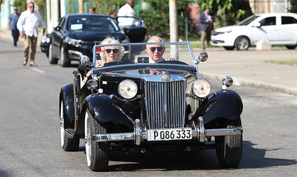 El príncipe Carlos de Gran Bretaña llegó en la mañana de este martes al parque John Lennon, en un parque de El Vedado habanero, manejando un MG descapotable de 1953, de color negro. El heredero de la corona británica llegó al parque conocido por la escultura del exbeatle acompañado de su esposa Camila, duquesa de Cornualles, en su tercer día de visita a Cuba.