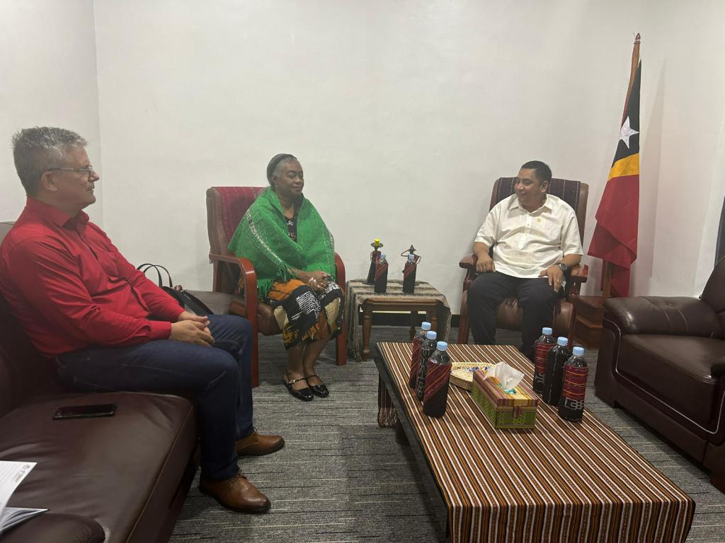 Dili, 12 de septiembre de 2025. En la sede de la Secretaría de Arte y Cultura del país, su Secretario de Estado Jorge Soares Cristovao, acompañado por el director de Arte y Cultura, Felix Ximenes, recibieron a la embajadora Alina Aldama, quien estuvo asistida por el coordinador de la Brigada de Deportes Carlos Manuel Fuentes Martínez y el secretario Antonito Amaral.
