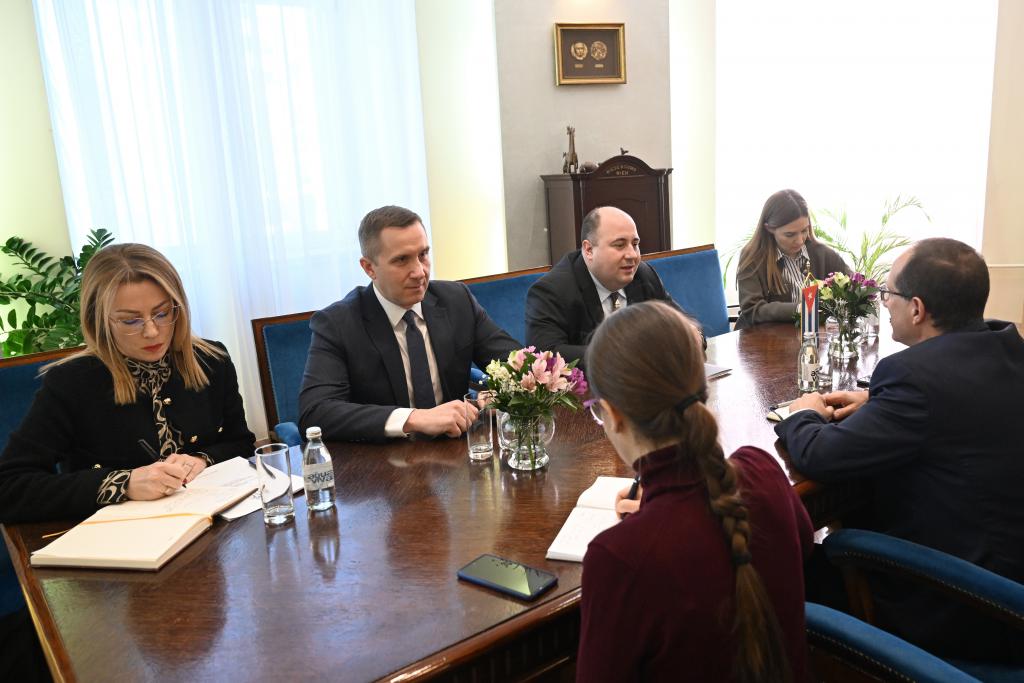 Belgrado, 12 de febrero de 2025. El Secretario General del Ministerio de Asuntos Exteriores de la República de Serbia, Dušan Kozarev, recibió, el 11 de febrero, al Embajador de Cuba, Leyde Ernesto Rodríguez Hernández.