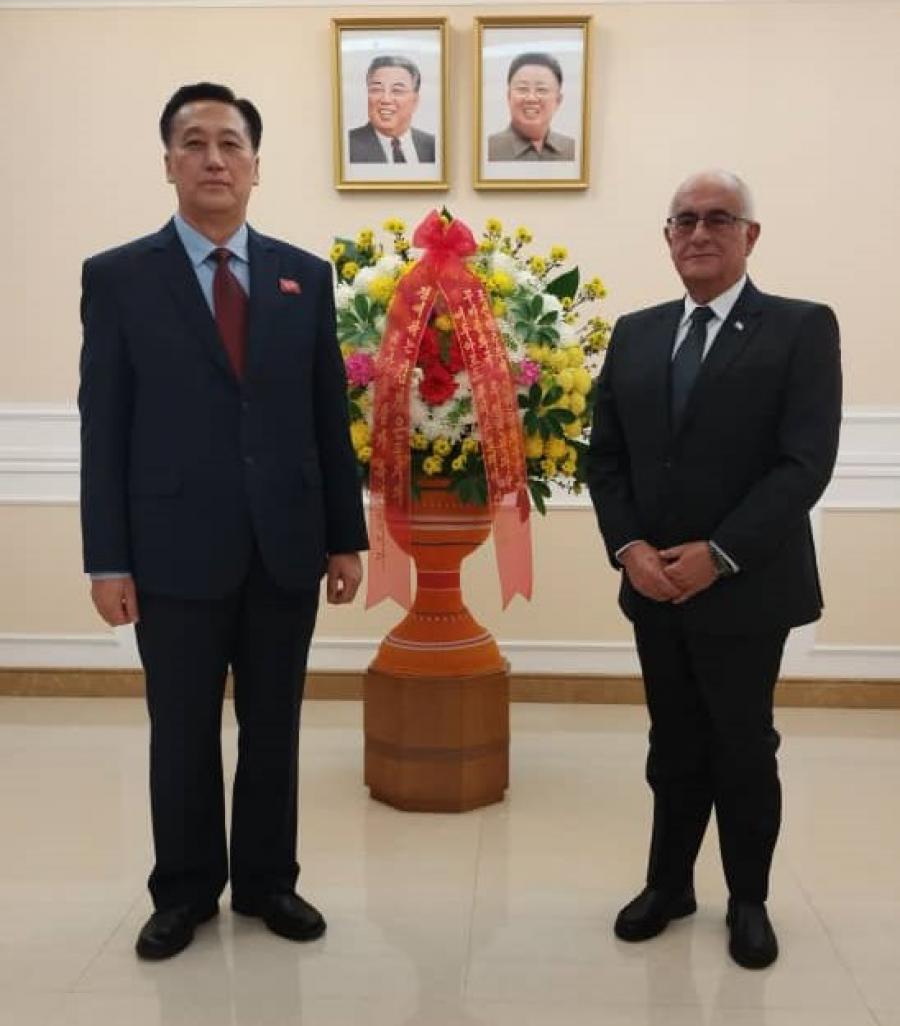 Pyongyang, 25 de diciembre- lLa Embajada de Cuba en Pyongyang hizo entrega en la sede del Ministerio de Relaciones Exteriores, de una Carta de Felicitación dirigida al Líder Kim Jong Un, acompañada de una cesta floral, las que fueron recibidas por el Viceministro Jon Don Hak. El Embajador Eduardo Luis Correa, al hacer la entrega, expresó nuestro reconocimiento de los éxitos logrados por el pueblo coreano en la construcción de su sociedad socialista, en sus Relaciones Exteriores y en el terreno de la Defensa Nacional y reiteró la solidaridad del Partido Comunista de Cuba, el gobierno y el pueblo cubano con los hermanos coreanos, de acuerdo con el legado de nuestros líderes históricos, el Generalísimo Kim Il Sung y el Comandante en Jefe Fidel Castro Ruz. El viceministro coreano agradeció la recepción de estas felicitaciones en el nuevo año y reiteró la identificación del Partido del Trabajo de Corea y el gobierno coreano con Cuba, deseándonos éxitos en el desarrollo de nuestra sociedad y, en particular, en el proceso de recuperación de los daños causados por el huracán MELISSA. El encuentro, más allá del protocolo, reflejó la identificación de nuestros procesos revolucionarios.