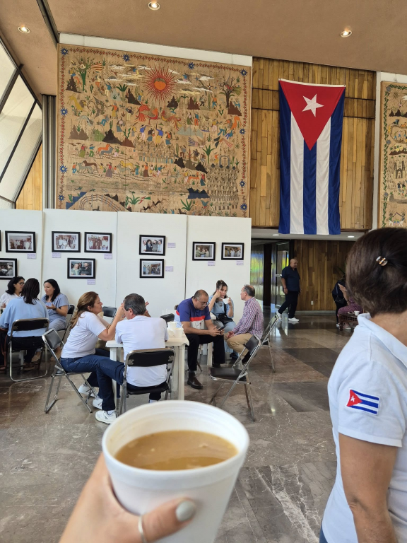 El encuentro estuvo marcado por un ambiente de fraternidad y cubanía: los participantes degustaron la tradicional caldosa, compartieron partidas de dominó y disfrutaron del talento artístico de Lilian Moya.