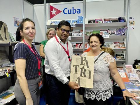 Durante un encuentro cordial entre el personal diplomático y la delegación cubana, se destacaron los títulos más relevantes de la literatura cubana, así como una selección de poemarios dedicados a los Orishas, que se presentan en combinación con calados y telas. Uno de los principales atractivos de la exhibición fue la obra "Patria", elaborada de manera artesanal sobre papel manufacturado. Esta pieza, que utiliza imprentas y maquinaria de época, respeta el diseño original del periódico fundado en 1892 por el Héroe Nacional José Martí, que sirvió como órgano del Partido Revolucionario Cubano, pero que en esta ocasión incluye poemas dedicados a la mayor de las Antillas.