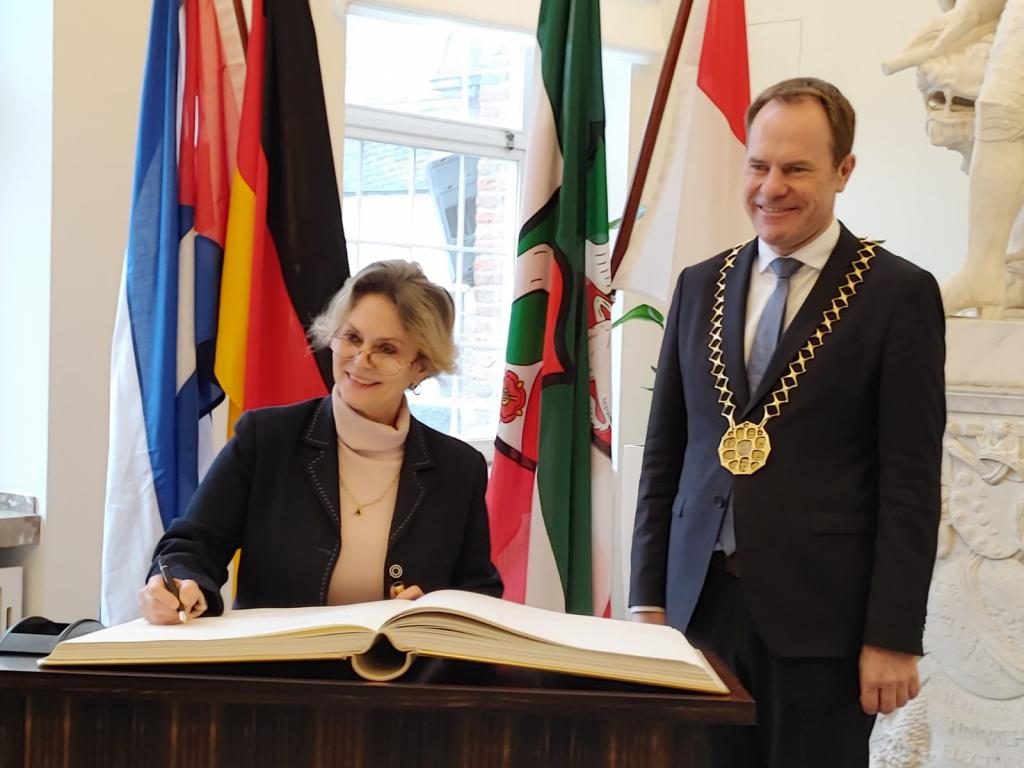 Berlín, 7 de febrero de 2023.- La Embajadora de Cuba Juanita Martínez González realizó una fructífera visita de trabajo a la ciudad de Düsseldorf, que incluyó un encuentro con el Alcalde de la ciudad Dr. Stephan Keller. Ambas partes coincidieron en potenciar los vínculos de cooperación en diversos campos como el económico – comercial, la cultura, el turismo y la ciencia. La visita concluyó con la ceremonia de firma del Libro de Oro de la Ciudad de Düsseldorf.