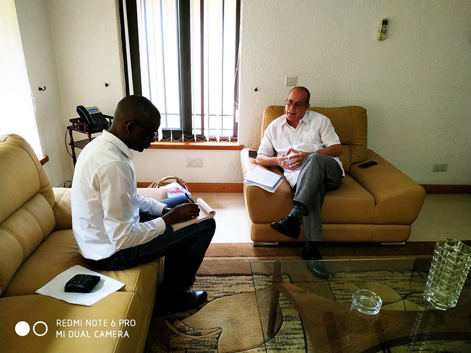 El embajador cubano en Uganda ofreció entrevista al periodista del New Vision John Mandaba sobre la importancia para Cuba de la celebración del Día de África, celebración del 45 Aniversario del establecimiento de la relaciones diplomáticas entre Cuba y Uganda, y los efectos negativos para la isla de las medidas de la administración Trump contra Cuba el pasado 17 de abril y de la activación del artículo III de la Ley Helms-Burton el pasado 2 de mayo.