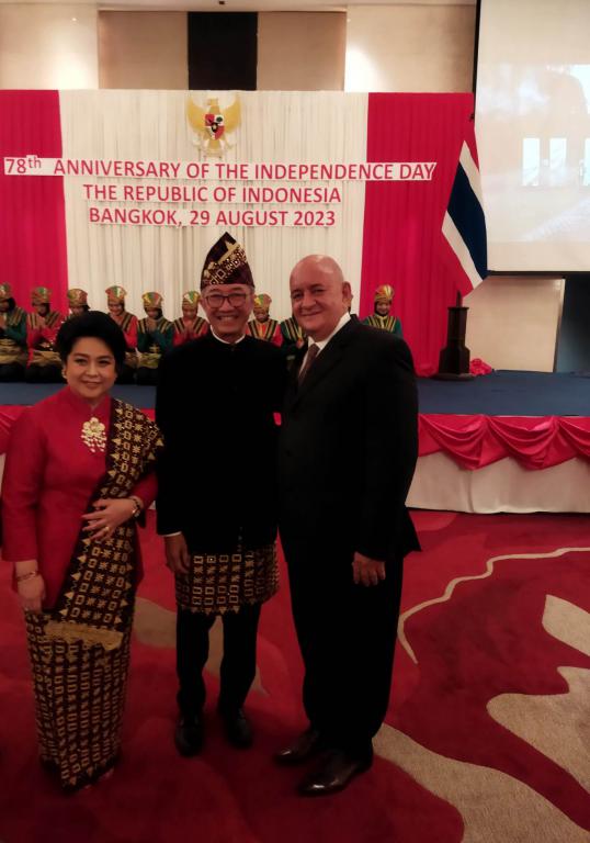 El embajador Pedro Pablo San Jorge Rodríguez asistió a la Recepción Nacional por el 78 Aniversario de la Independencia de la República de Indonesia. En nombre del gobierno y pueblo cubanos el embajador trasladó las felicitaciones al Embajador indonesio acreditado en Tailandia Sr. Rachmat Budiman.