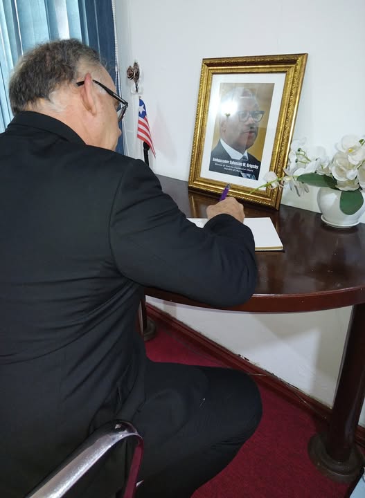 Accra, 20 agosto 2025. – El embajador de la República de Cuba, Julio E. Pujol, asistió a la firma del libro de condolencias abierto en la embajada de Liberia en esta capital con motivo del fallecimiento del embajador Sylvester M. Grigsby, exministro de Estado para Asuntos Presidenciales y exministro interino de Relaciones Exteriores de la República de Liberia.