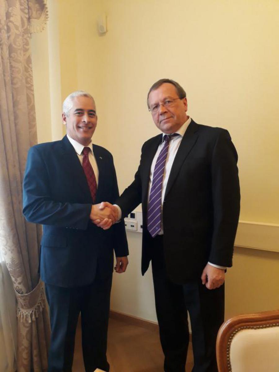 Rusia, 2 de abril. El Director de Cooperación Humanitaria y Derechos Humanos de la Cancillería rusa Anatoli Viktorov, sostuvo un cordial encuentro con el Embajador de Cuba en Rusia Gerardo Peñalver Portal, en la sede del Ministerio de Asuntos Exteriores de la Federación de Rusia.