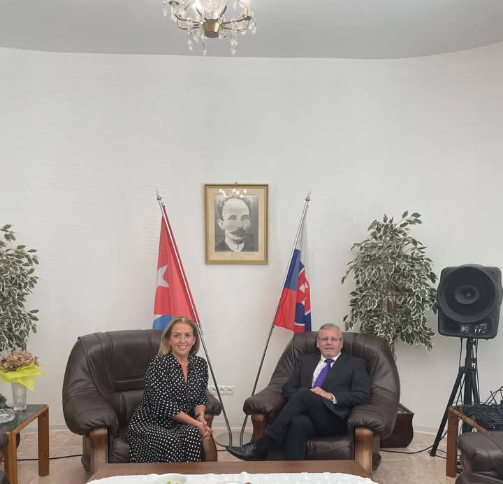 Bratislava, 11 de septiembre de 2025 – El Embajador de Cuba en la República Eslovaca, Rafael Pino Bécquer, recibió en visita de cortesía en la sede de la Misión a la Exma. Sra. Sofía Ruiz del Árbol Moro, Embajadora del Reino de España en este país.