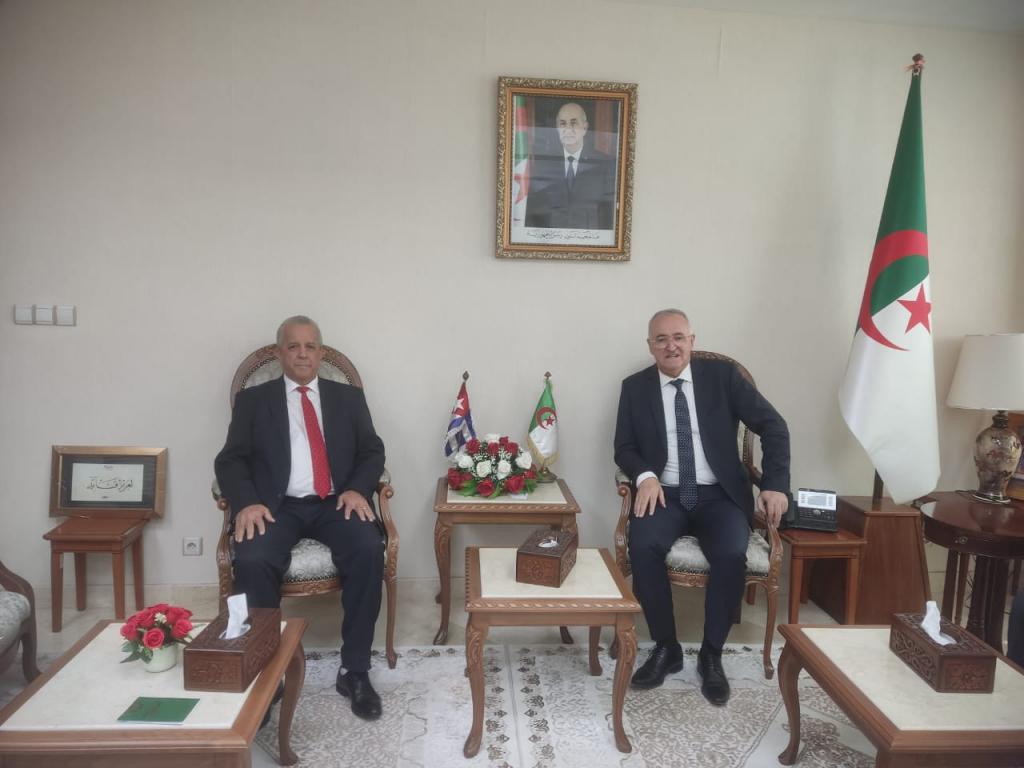 Argel, 14 de octubre de 2024. El Embajador de Cuba, Héctor Igarza, realizó una visita de cortesía, la víspera, al Ministro de Finanzas de Argelia, Laaziz Faid, con quien dialogó sobre vínculos históricos de amistad y logros económicos y sociales entre ambos países hermanos.