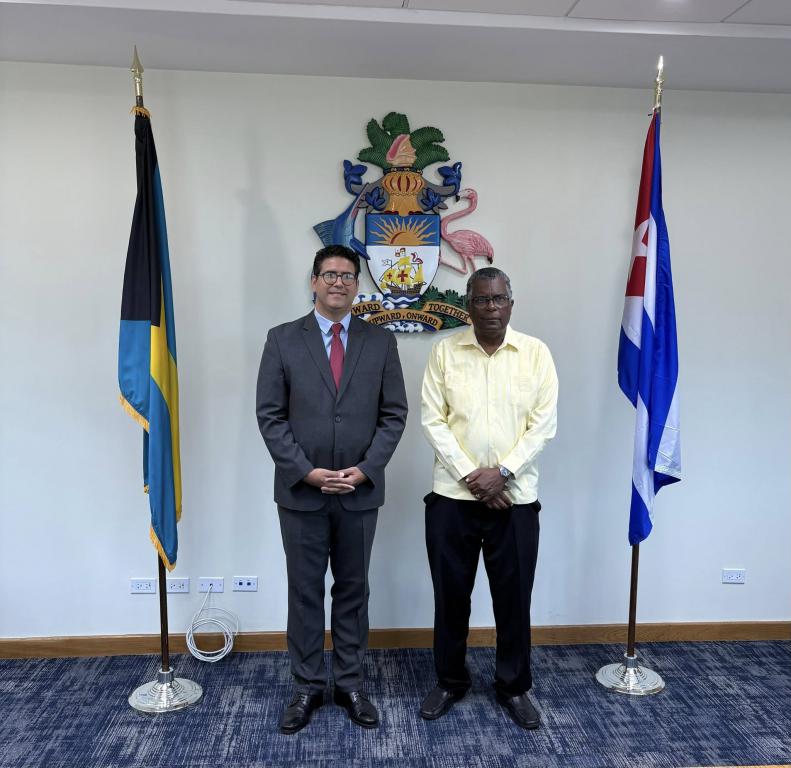 Nassau, 08 de abril de 2026. El Embajador de la República de Cuba en la Mancomunidad de Las Bahamas, Juan Carlos Marcof Sánchez, fue recibido por el Honorable Fred Mitchell, Ministro de Relaciones Exteriores de la Mancomunidad de Las Bahamas, con quien sostuvo un cordial encuentro.