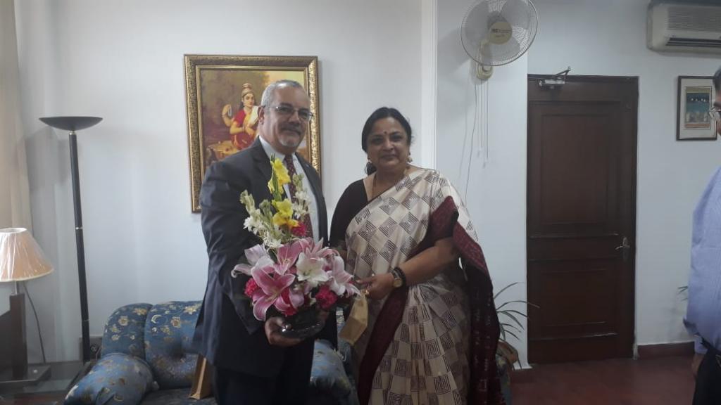 Nueva Delhi, 21 de marzo de 2022. El Embajador de la República de Cuba en India, Alejandro Simancas Marín, sostuvo un encuentro con la Rectora de la Universidad Jawaharlal Nehru, la profesora Santishree Dhulipudi Pandit. Durante el cordial intercambio se evaluaron las oportunidades de fortalecer los vínculos bilaterales, así como de impulsar la cooperación entre instituciones de educación superior, con el propósito de promover el idioma español y la cultura cubana en la India. Igualmente se abordaron las posibilidades de cooperación con universidades cubanas.