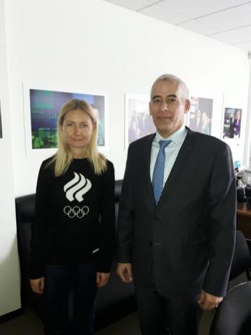 Rusia, 14 de marzo. El Embajador cubano en Moscú Gerardo Peñalver Portal fue recibido por la directora del canal de RT en español, Victoria Vorontsova.
