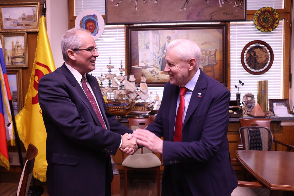 Moscú, 6 de marzo.- El embajdor de Cuba en la Federación de Rusia, Enrique Orta González, fue recibido en las oficinas del partido "Rusia Justa" por su presidente, Serguei Mironov.