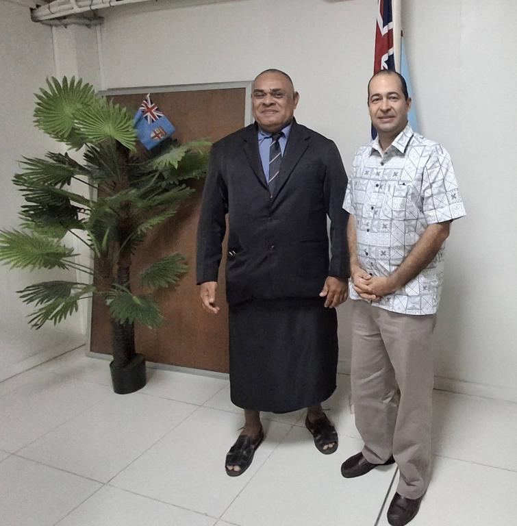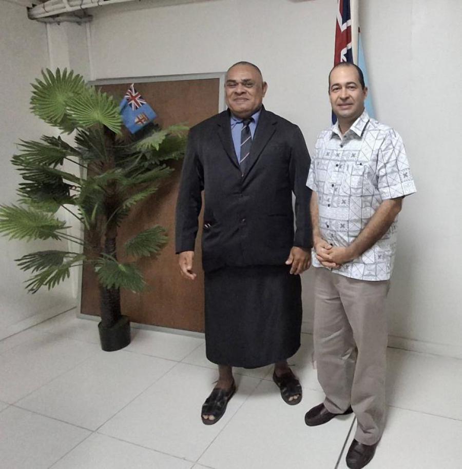Lautoka, 16 de abril de 2026. - El Embajador de Cuba, Néstor Torres, inició sus actividades en las ciudades de Nadi y Lautoka con una visita a la Oficina del Comisionado Occidental. Elimi Rokoduru, oficial de Planificación, realizó una detallada presentación sobre la región, sus desafíos y el peso fundamental de su economía y comercio a nivel nacional. Néstor por su parte agradeció la bienvenida y detalló al funcionario el programa de actividades a desarrollar durante su estancia en la región, compuesto en lo fundamental por visitas a universidades, intercambio con hombres de negocios vinculados a Cuba y encuentro con cubanos residentes en Nadi.