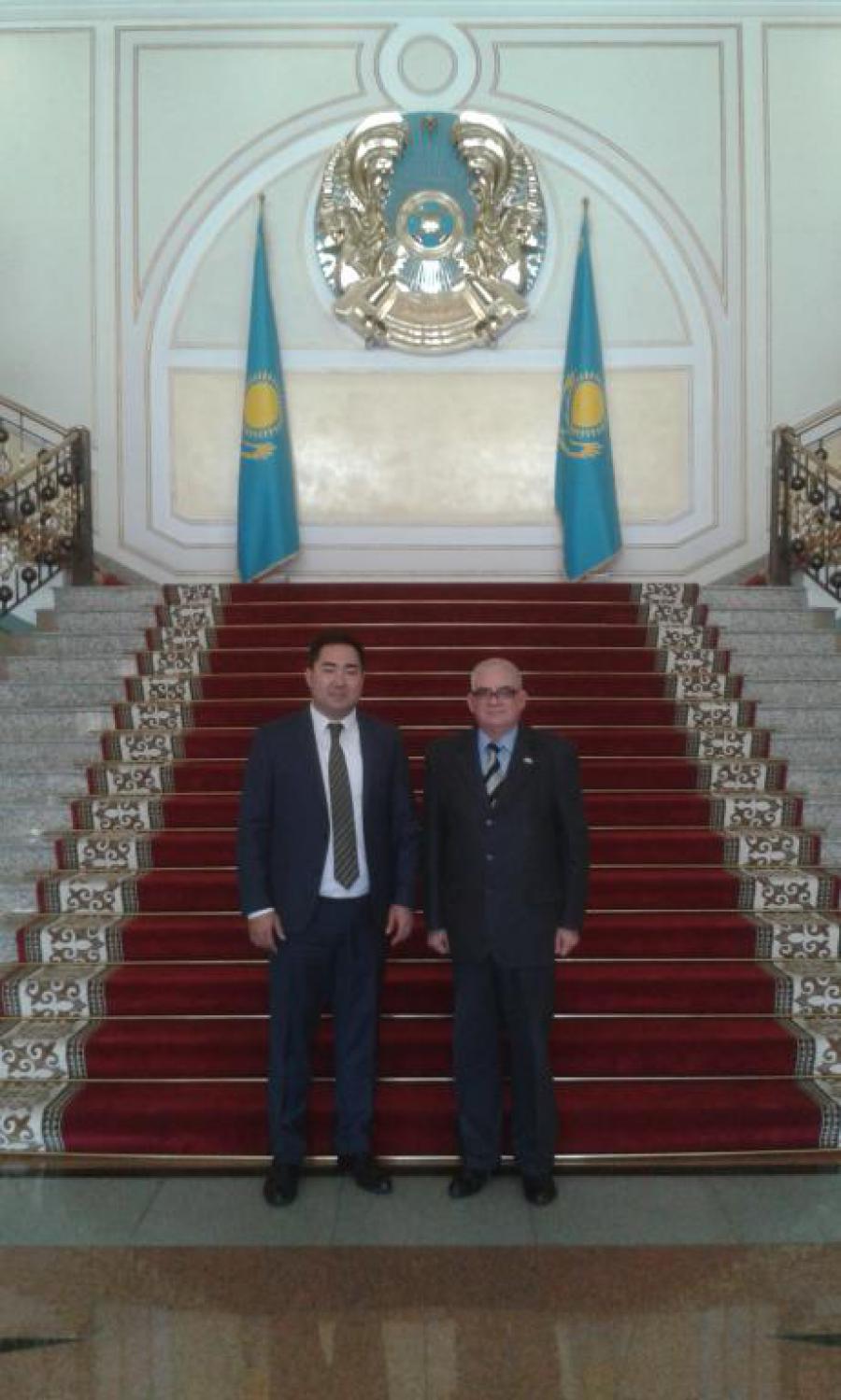Astaná, 12 de octubre de 2017- Con motivo de la próxima terminación de su misión diplomática el Embajador Carlos Valdés de la Concepción en Kazajstán, sostuvo un cordial encuentro con el Director General del Departamento América de la Cancillería, Bulat Sugurbayev.