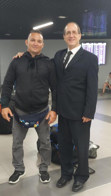 Belgrado, 14 de septiembre de 2023. El árbitro Internacional cubano Yunior Sosa Naranjo, llegó, en la tarde de este jueves, al Aeropuerto Internacional Nikola Tesla, en esta capital, donde fue recibido por el Embajador de Cuba, Leyde Ernesto Rodríguez Hernández.
