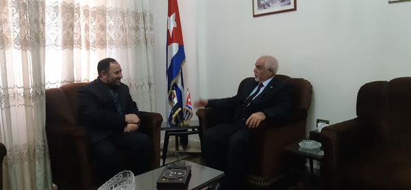 El Embajador de Cuba en Siria, Luis Mariano Fernández Rodríguez, recibió en la sede de la misión diplomática en Damasco al Excelentísimo Señor Hossein Akbari, Embajador de la República Islámica de Irán.