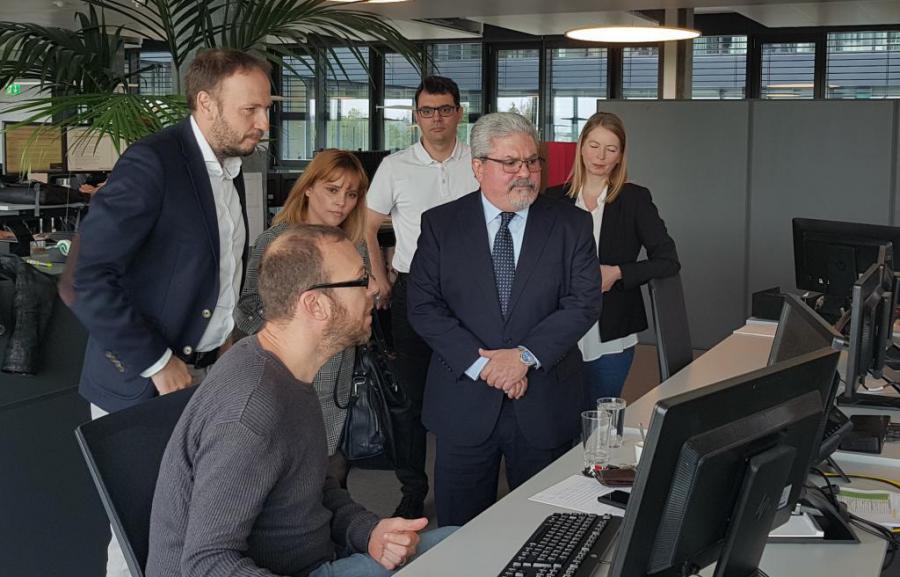 Berna, 24 de mayo de 2019.- El Embajador de Cuba en Suiza, Manuel Aguilera de la Paz, realizó una visita a la sede de la Redacción Central de la Agencia de información suiza Keystone ATS- SDA, donde fue recibido por Federico Bragagnini, Redactor Jefe de los servicios en francés y miembro de la Dirección de la agencia; Nicole Meier, Jefa de la redacción germanófona nacional e internacional y Christian Rovere, Jefe adjunto de la redacción francófona nacional e internacional.