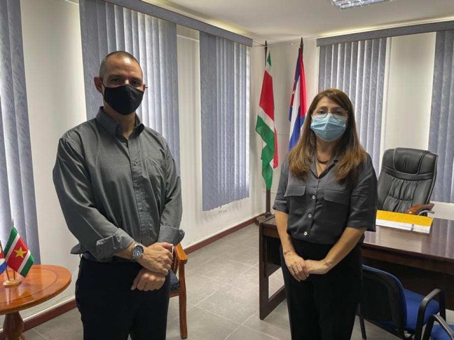 Paramaribo, 19 de julio. El Embajador de Cuba en Suriname, Igor Azcuy González, ofreció declaraciones al medio de prensa hispano SuNoticia sobre los acontecimientos ocurridos en la Isla el pasado 11 de julio. Durante el cordial encuentro con Ana Luisa Ferrier, directora del medio de prensa, el embajador explicó las razones que llevaron a un grupo de cubanos a salir a las calles el pasado domingo, destacando que fue producto de una camapaña comunicacional dirigida y articulada desde territorio norteamericano. Asimismo, explicó las razones por las cuales el pueblo cubano defiende su soberanía. Detalló sobre la batalla contra el bloqueo norteamericano que imponen a la mayor de las Antillas y la situación económica que se vive en el país luego de efectos sostenidos de una guerra económica desde EEUU y la crisis por la pandemia. El diplomático cubano trasladó los altos índices de eficacia de Cuba en el tratamiento a la pandemia y que Cuba solo se encuentra en un pico pandemico, lo que no justifica una intervención sanitaria. Asimismo, se trataron con el medio de prensa otros aspectos de la historia de Cuba y del conflicto con EEUU para que se entendiera bien las razones que tiene Cuba para defenderse. Finalmente, el Embajador lamentó profundamente que haya cubanos que pidan una invasión militar norteamericana a Cuba, conociendo la matanza y destrucción que ello ha traído a países como Siria, Libia, Afganistan e Iraq.