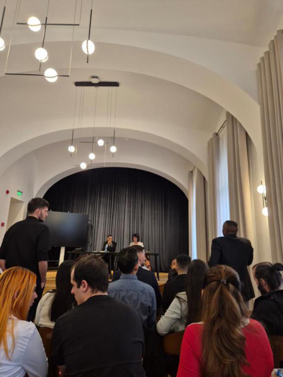Uno de los momentos más significativos de la visita fue el encuentro con los cerca de cincuenta estudiantes cubanos que cursan estudios en la Universidad Transilvania. La reunión, cargada de cercanía y emoción, permitió un intercambio directo sobre sus experiencias académicas y de vida en Brașov. Los estudiantes compartieron sus logros, inquietudes y aspiraciones, convirtiendo el diálogo en un espacio de confianza que reafirmó el compromiso de la Embajada con su bienestar.