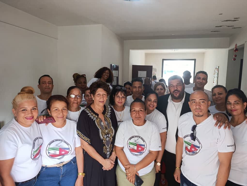 El diplomático estuvo acompañado por la máxima dirección de la Misión Educativa Cubana, la Dra. Ena Elsa Velázquez Cobiella, así como por el Coordinador Continental, MSc. Yunior Luis Heredia Tamayo, quienes participaron activamente en ambos intercambios.