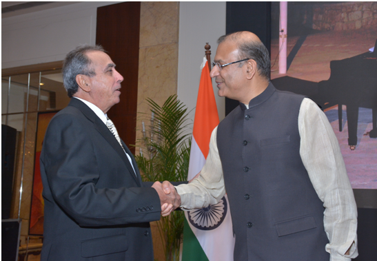 El Embajador de Cuba en la India, Oscar Martínez Cordovés intercambió saludos con el Ministro de Estado de Aviación Civil de este país, Shri Jayant Sinha.