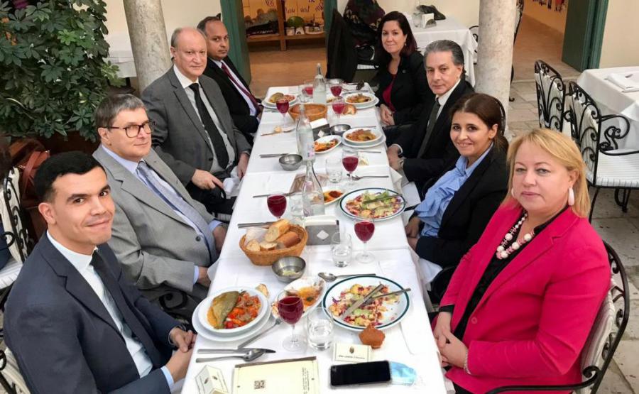 El almuerzo tuvo lugar en el emblemático Restaurante de la Medina, en el corazón del mercado, muy próximo de la mezquita Zitouna y renovado con una hermosa arquitectura tunecina, con un entorno maravilloso para cenas entre amigos o familiares, o para ofrecerles una cálida bienvenida, o despedida a personas distinguidas.