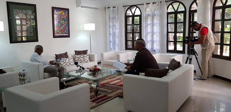 El Dr. Alejandro F. Díaz Palacios, Embajador de Cuba en Cabo Verde, ofreció una conferencia de prensa al periodista Waldemar Pires, del sistema informativo de la Televisión de Cabo Verde.