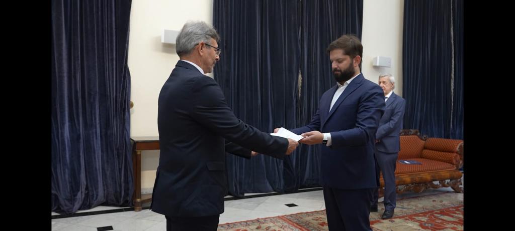 Santiago de Chile, 30 de diciembre de 2025.- En audiencia solemne en el Palacio de La Moneda, Oscar Cornelio Oliva presentó ante el Presidente Gabriel Boric Font, las Cartas Credenciales que lo acreditan como Embajador Extraordinario y Plenipotenciario de la República de Cuba ante la República de Chile.