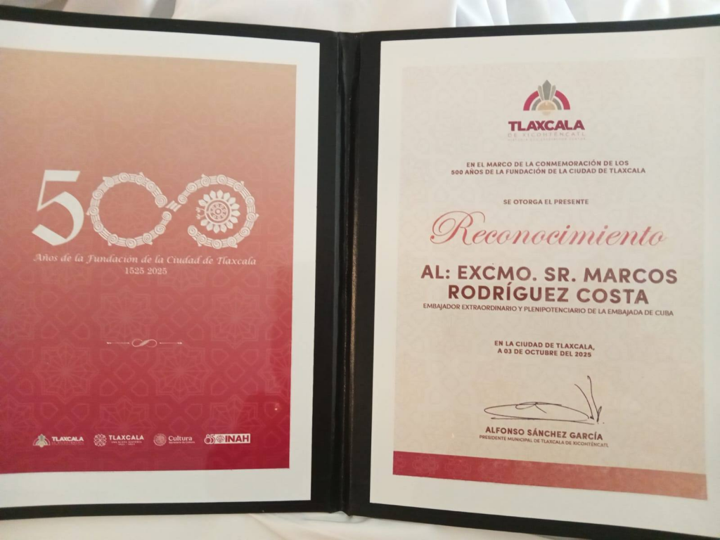 La Embajada de Cuba en México expresa su más sincero agradecimiento por esta distinción y felicita al noble pueblo de Tlaxcala por tan significativos festejos, que enaltecen su rica historia y cultura.