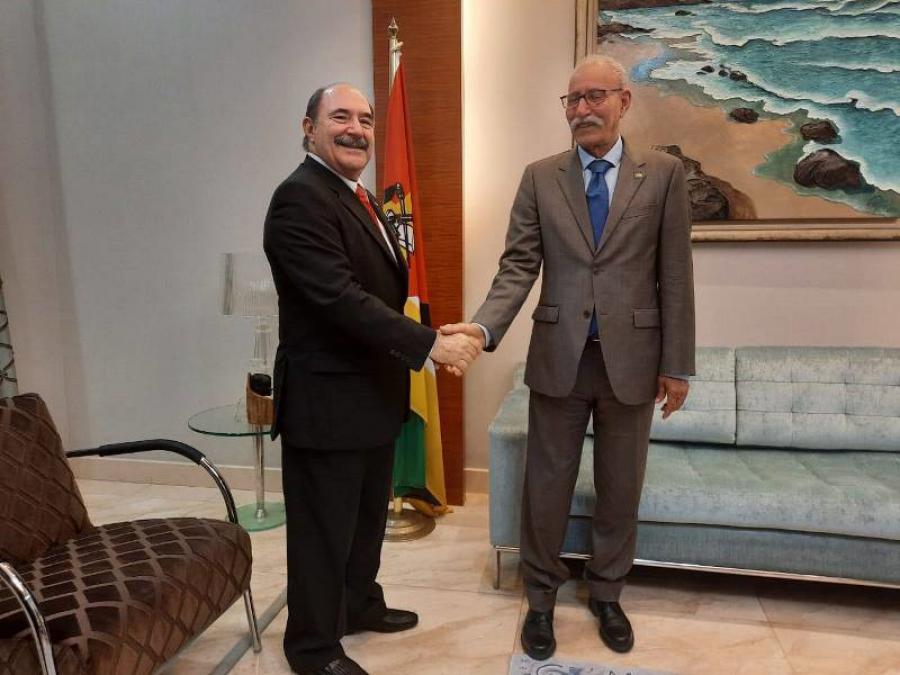 El embajador de Cuba, Su Excelencia Jorge Luis López Tormo, saludó al Presidente de la República Árabe Saharaui Democrática, Brahim Gali, a su llegada a Maputo para participar en los festejos por el 60 Aniversario del FRELIMO.