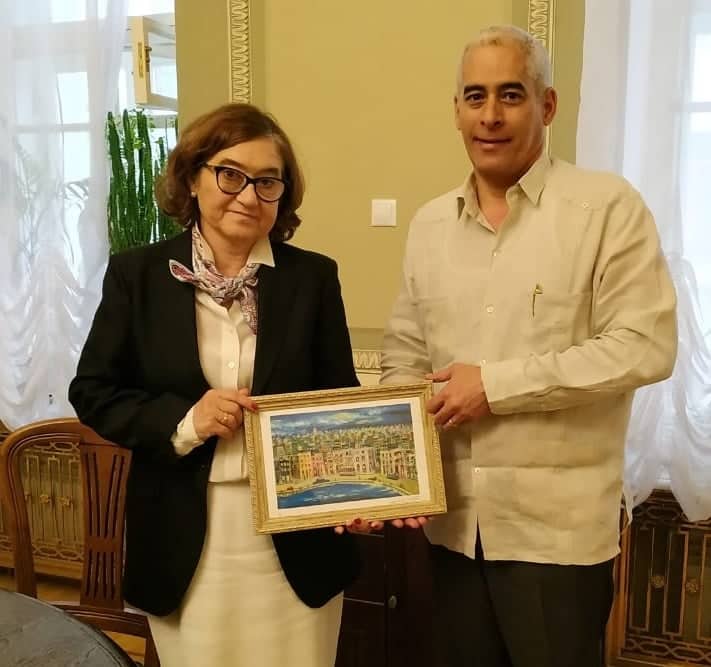 Moscú, 27 de junio.- El Embajador de Cuba en Rusia, Gerardo Peñalver Portal sostuvo, en la tarde de hoy, un encuentro de trabajo con Zelfira Ismailovna Tregulova, Directora General de la Galería Tretiakov de Moscú, en la sede de dicha institución.